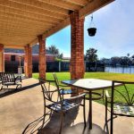 Its floor-to-ceiling windows has a view of the patio and the lake. It also has private access to the patio.