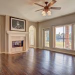Featuring neutral toned walls, huge picture windows, hardwood floors, and a fireplace, this room is cheerful, inviting and warm, a room full of happiness. The oversized windows let in plenty of natural light and allows unhindered views of the patio and the calm peaceful lake beyond.
