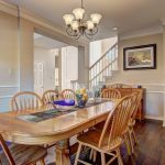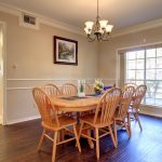 This formal dining room is spacious and can easily accommodate a table for eight guests. Add a painting, wall decor, or a cherry wood display cabinet and this place is all set!